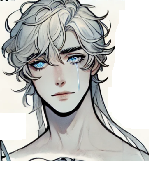Lirael’s hair is long and flowing, a soft cascade of platinum white that looks almost like water caught in motion. It falls to his shoulders.